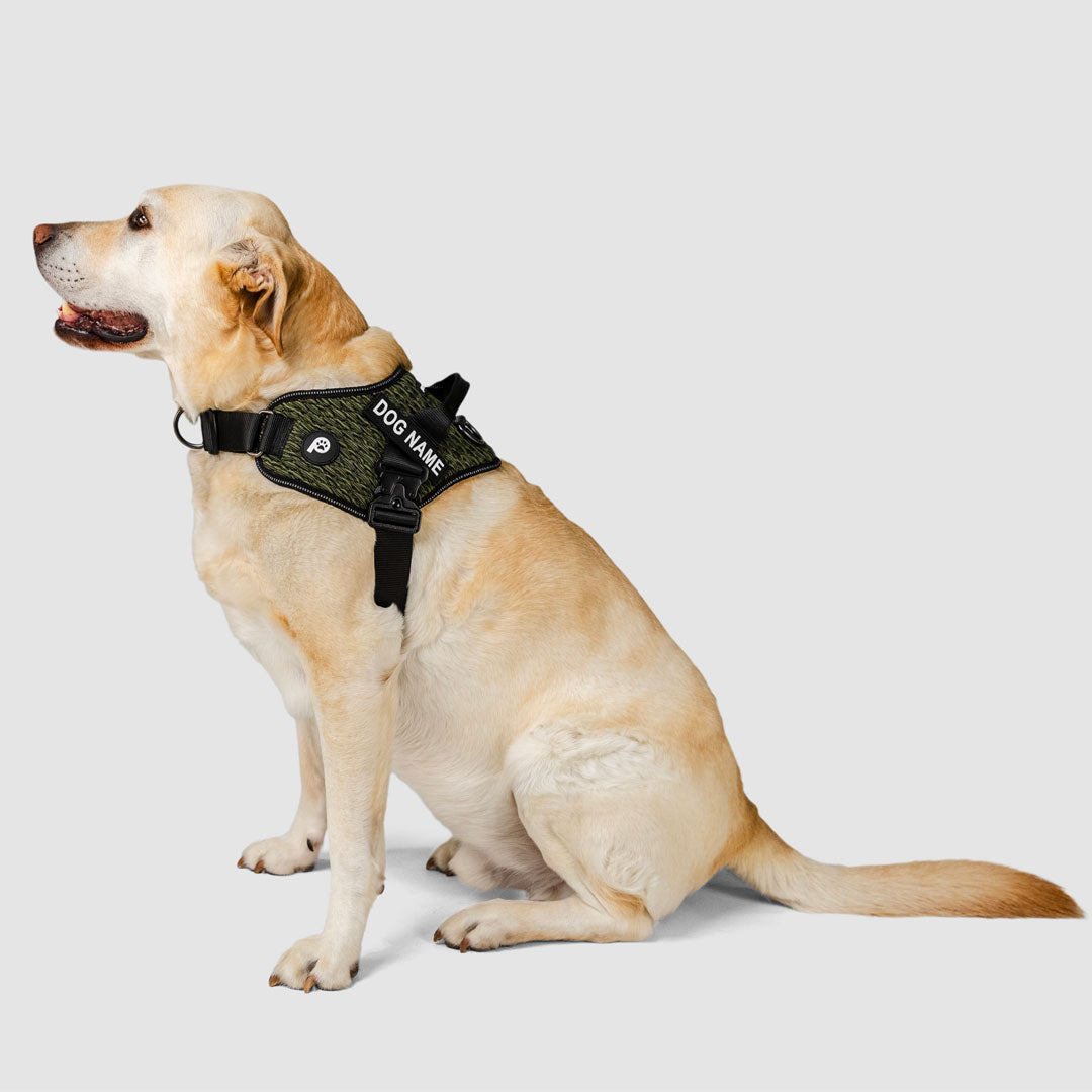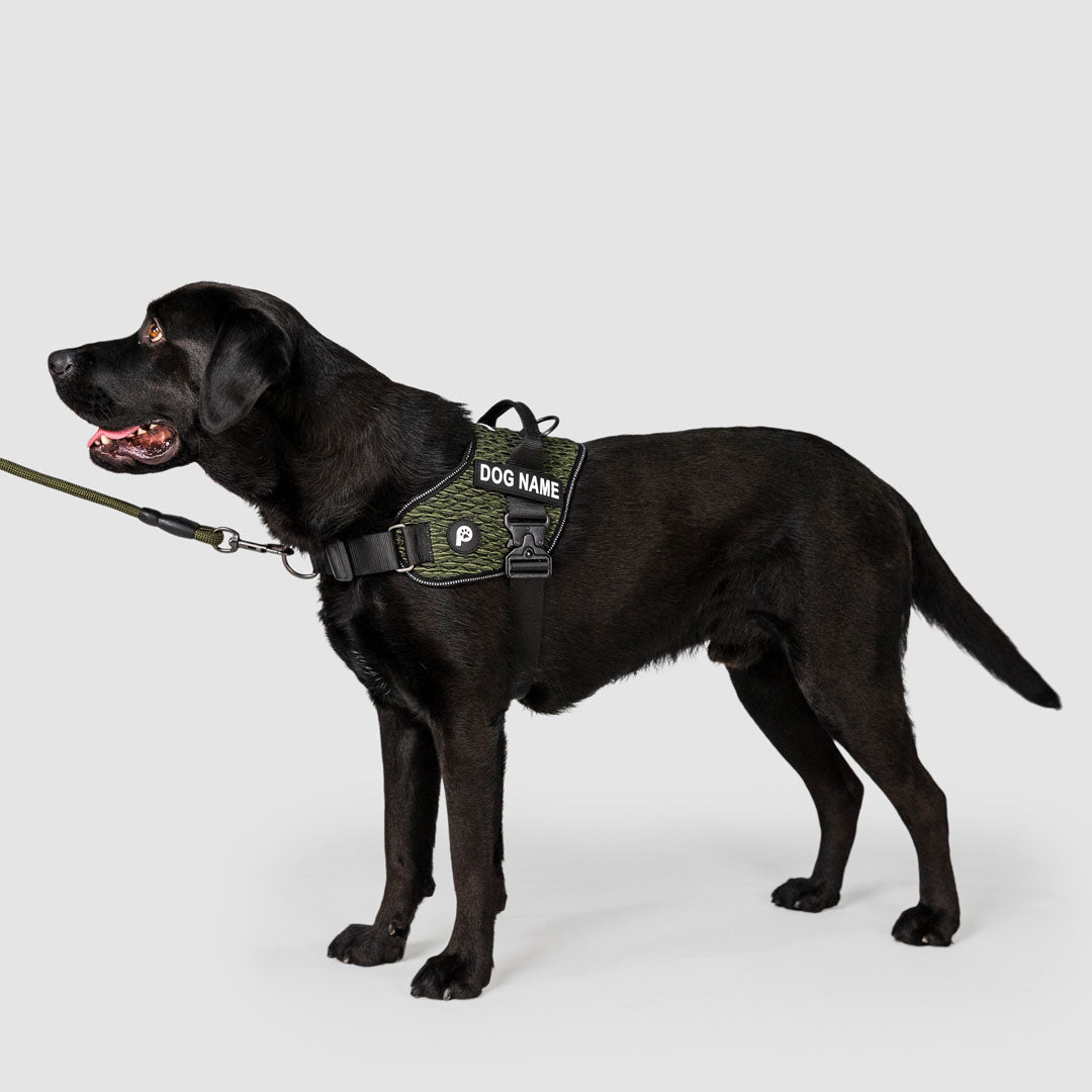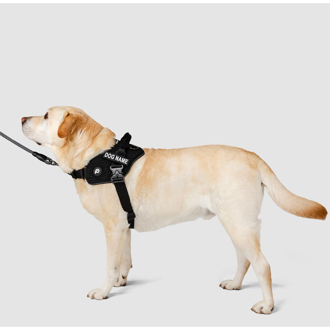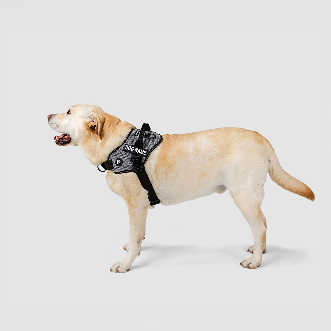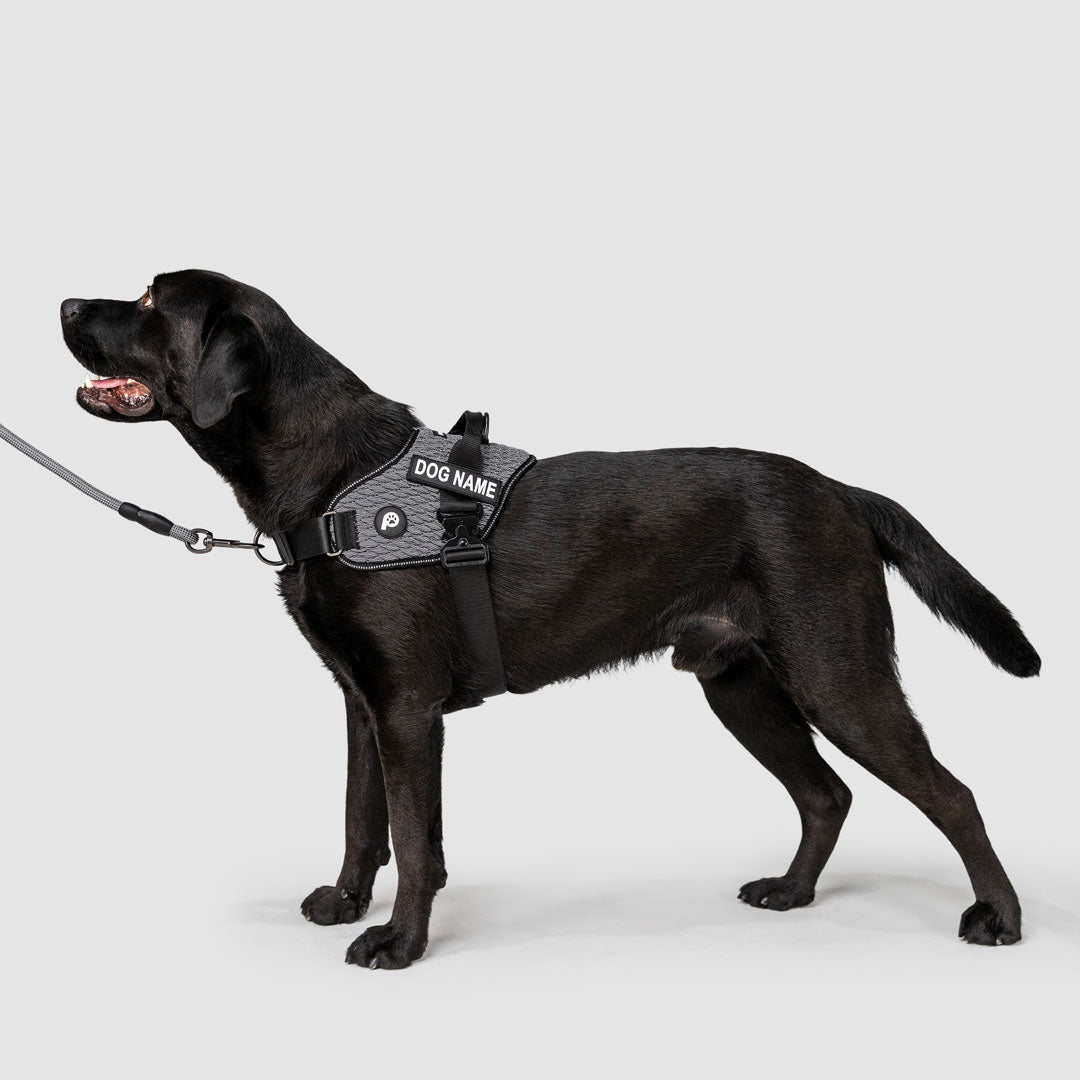 This is where comfort meets performance. Crafted with a 3D knitted outer layer using the same high-performance technology found in premium activewear sneakers, it offers a flexible, durable build with a distinctive design that moves with your dog. The padded ventilated mesh interior provides soft cushioning and breathability for a supportive, secure fit that stays comfortable on every walk. A built-in front D-ring gently discourages pulling, while the single-click heavy-duty magnetic buckle delivers effortless fastening with lasting strength. With fully adjustable front chest and girth straps and customisable name patches, it combines control, comfort and effortless style, created for your dog’s daily flex.